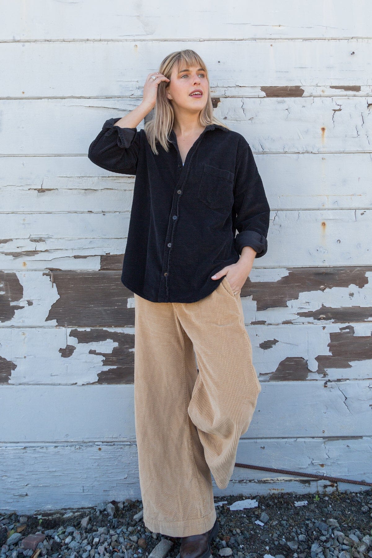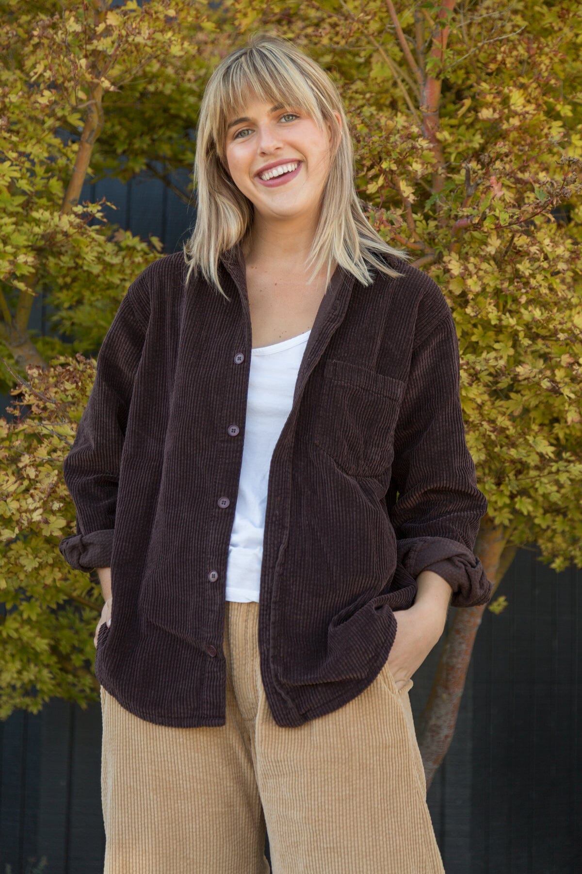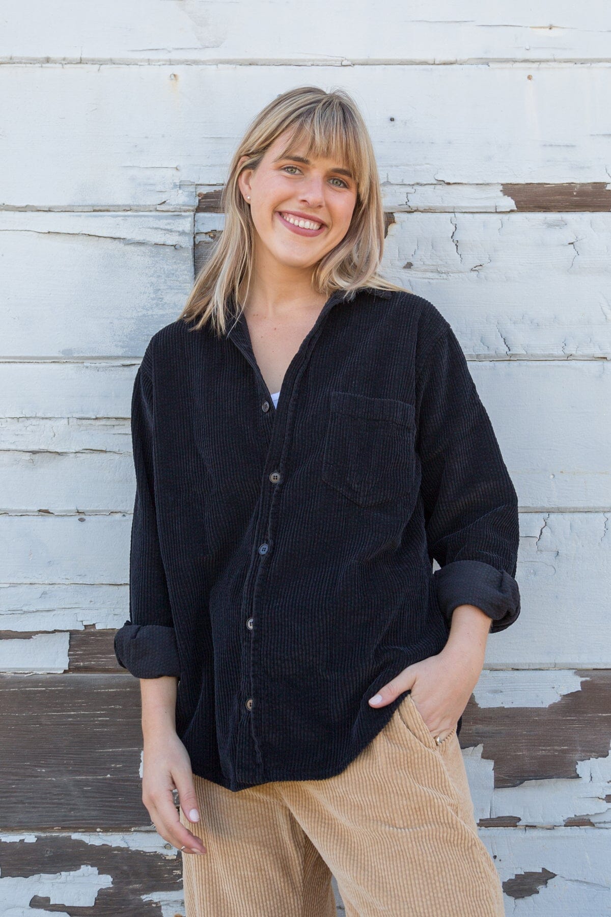 Button up collared shirt with a bust patch pocket and a box pleat on the back.