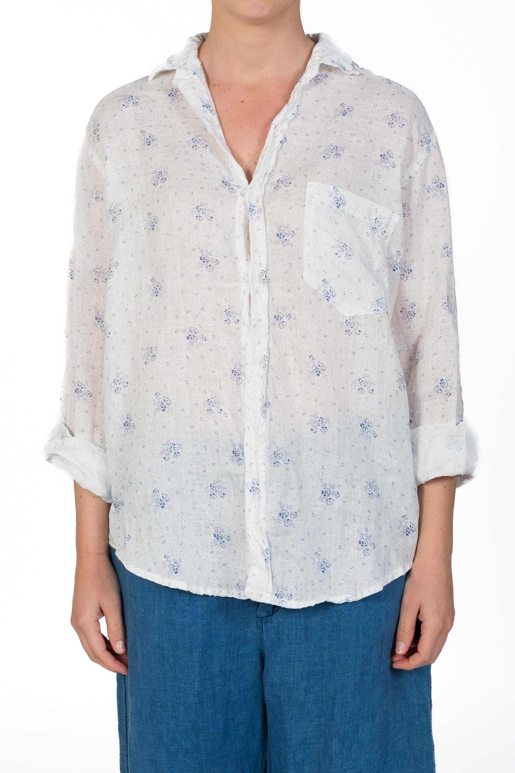 Button up collared shirt with a bust patch pocket and a box pleat on the back.