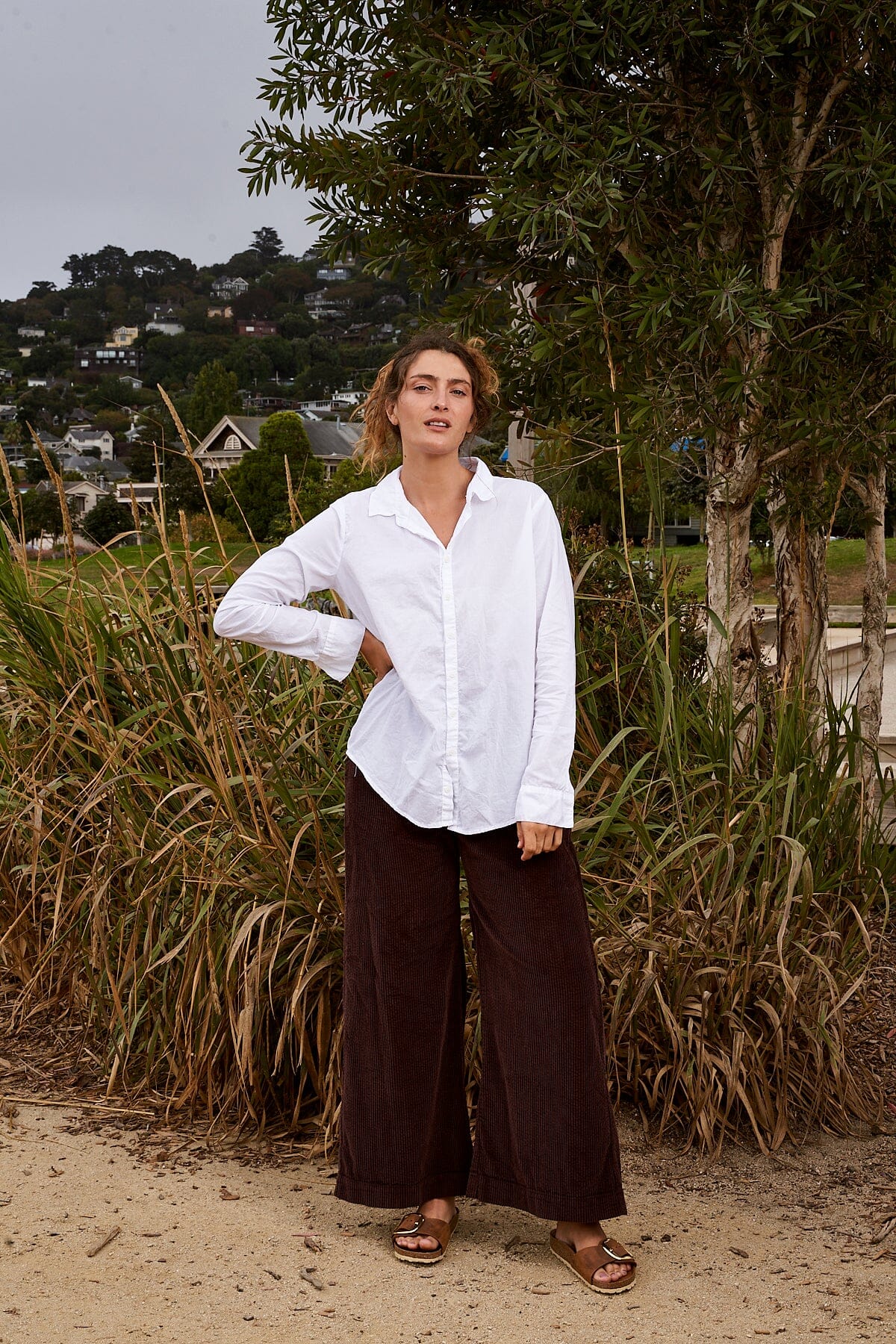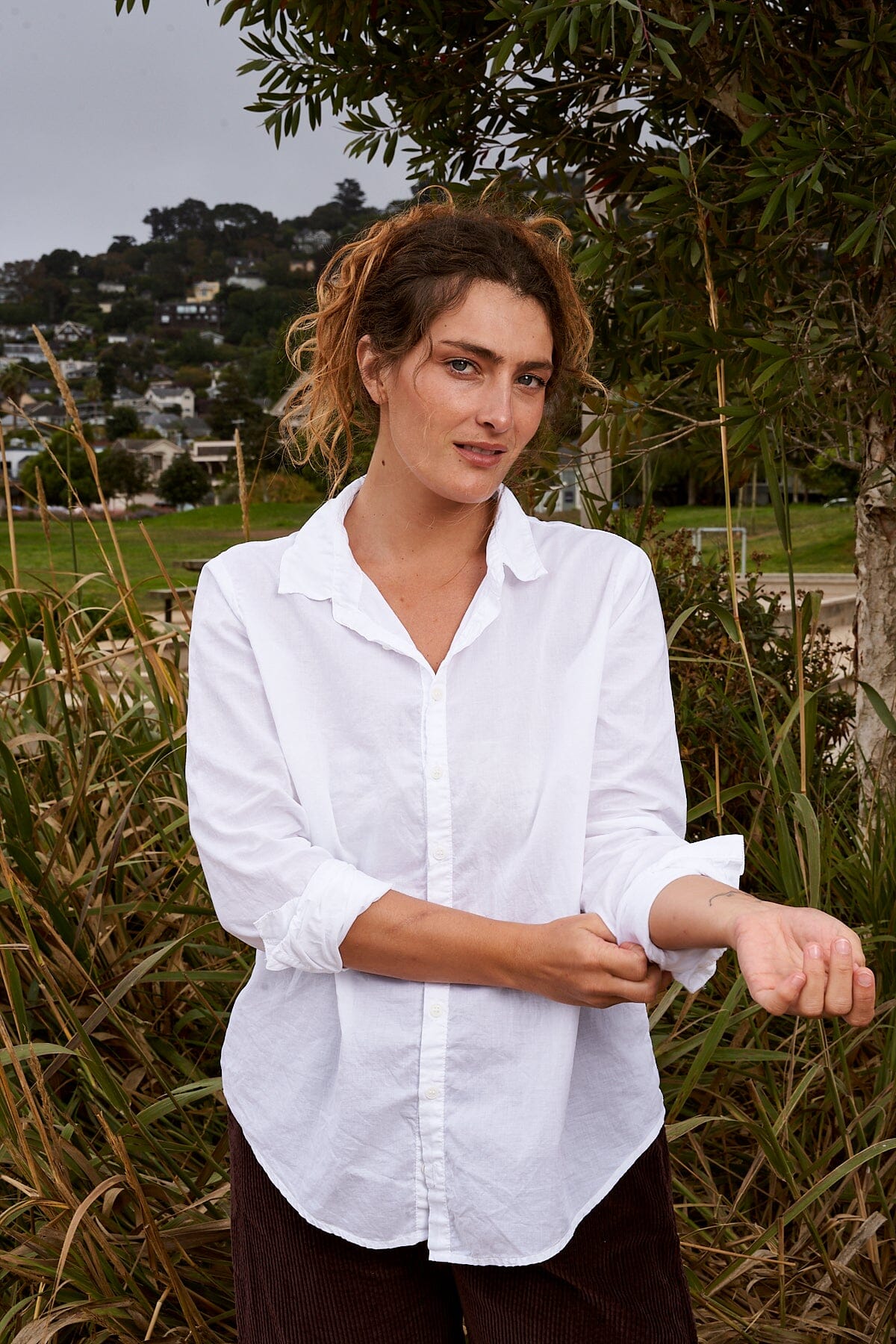 A CP Shades classic. The Romy is a softly fitted button-up shirt with a collar and cuffs.