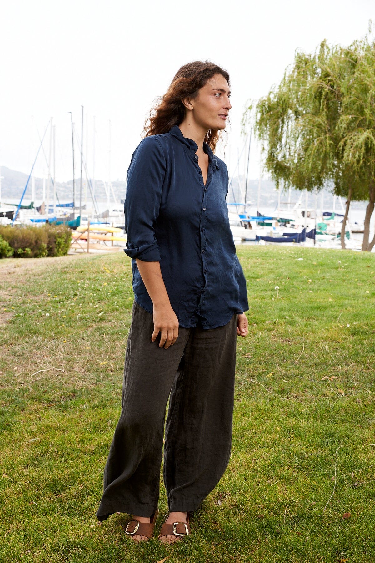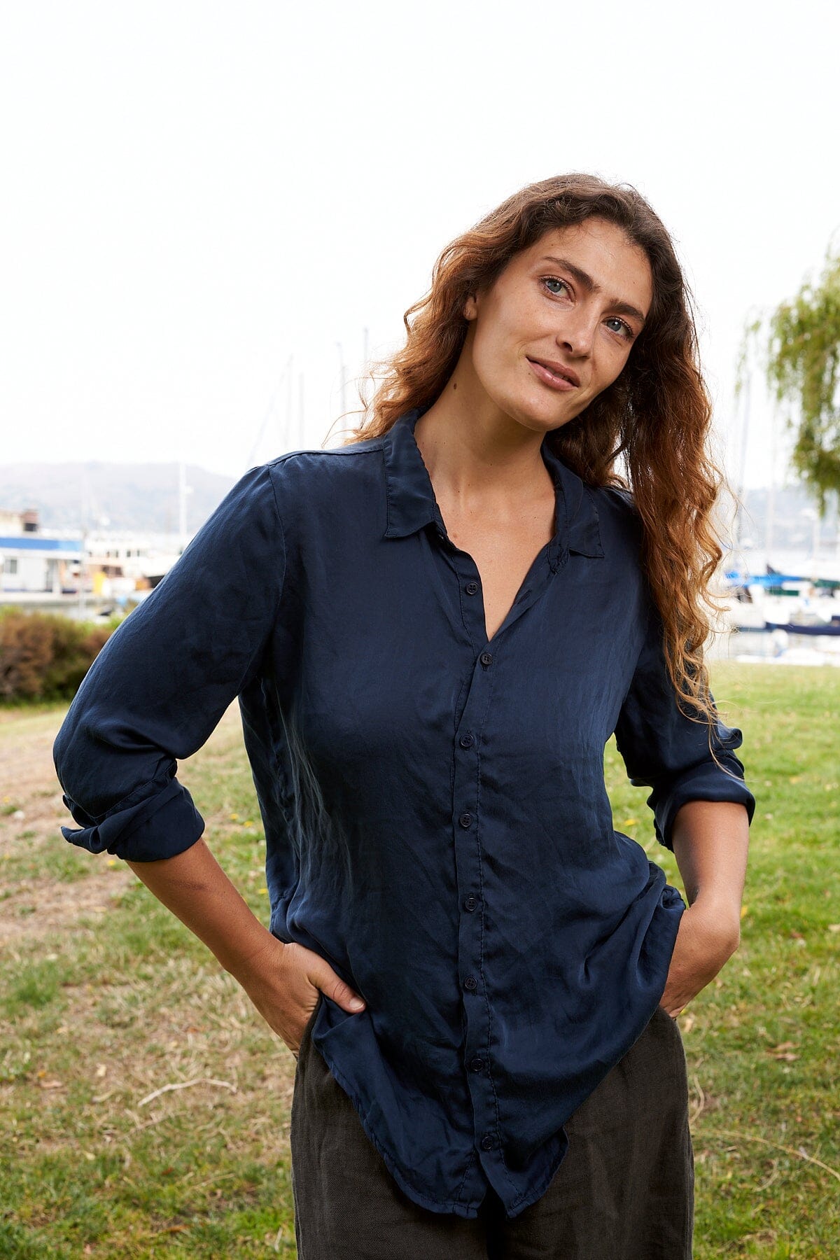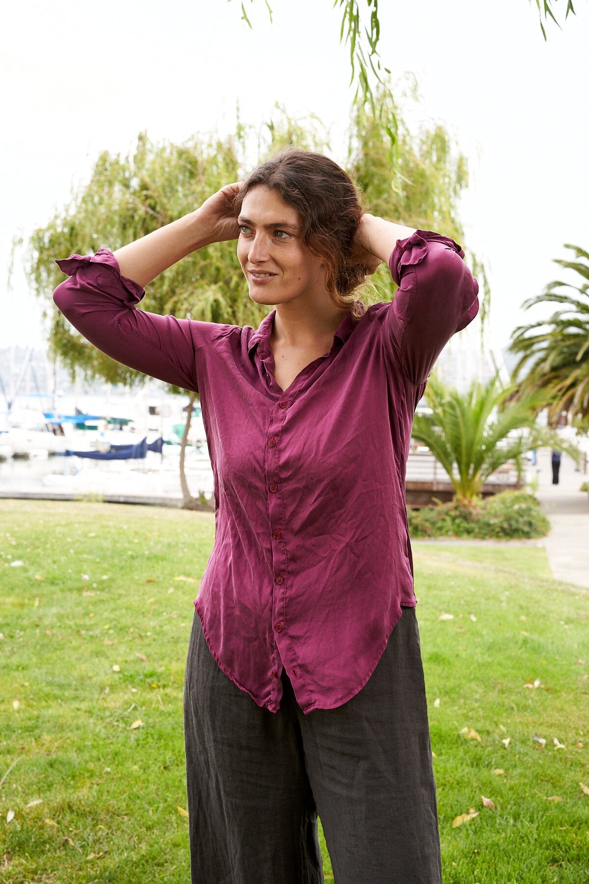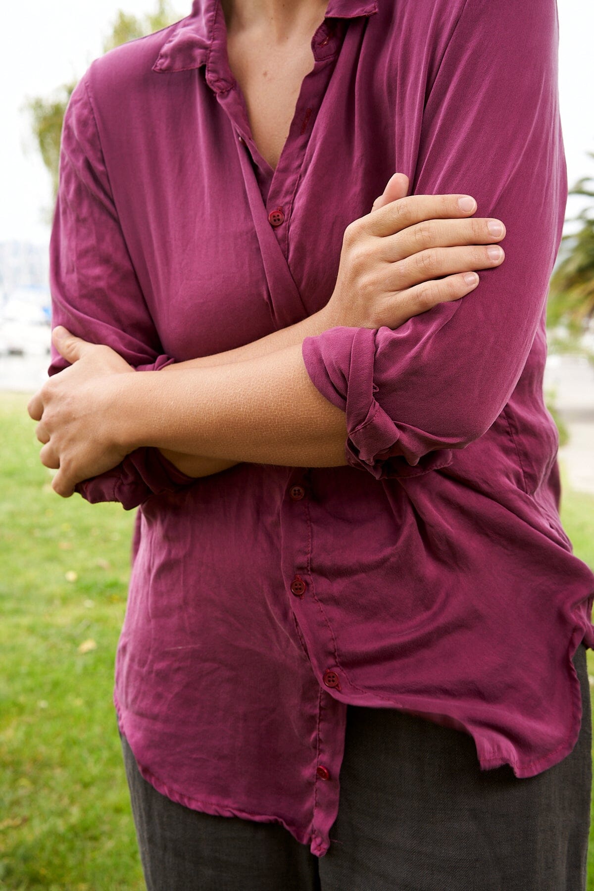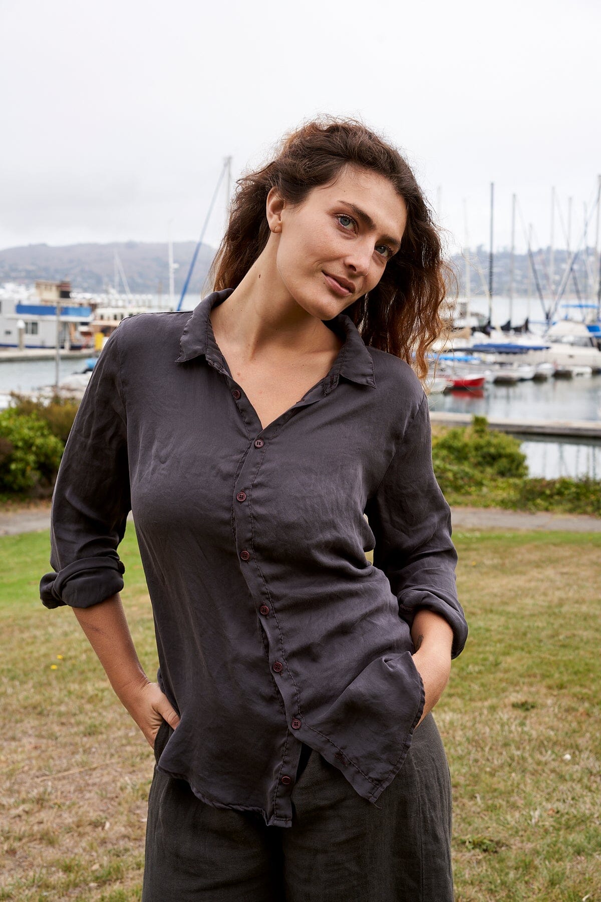 A CP Shades classic. The Romy is a softly fitted button-up shirt with a collar and cuffs.