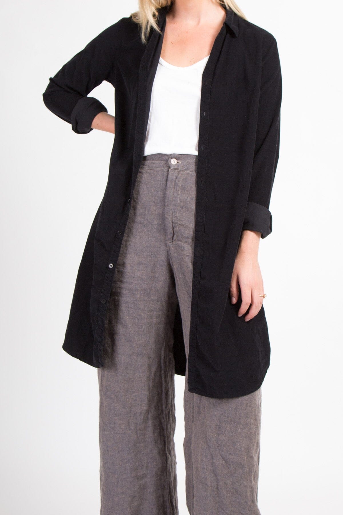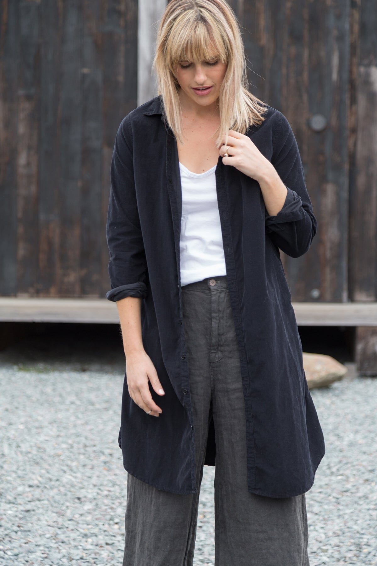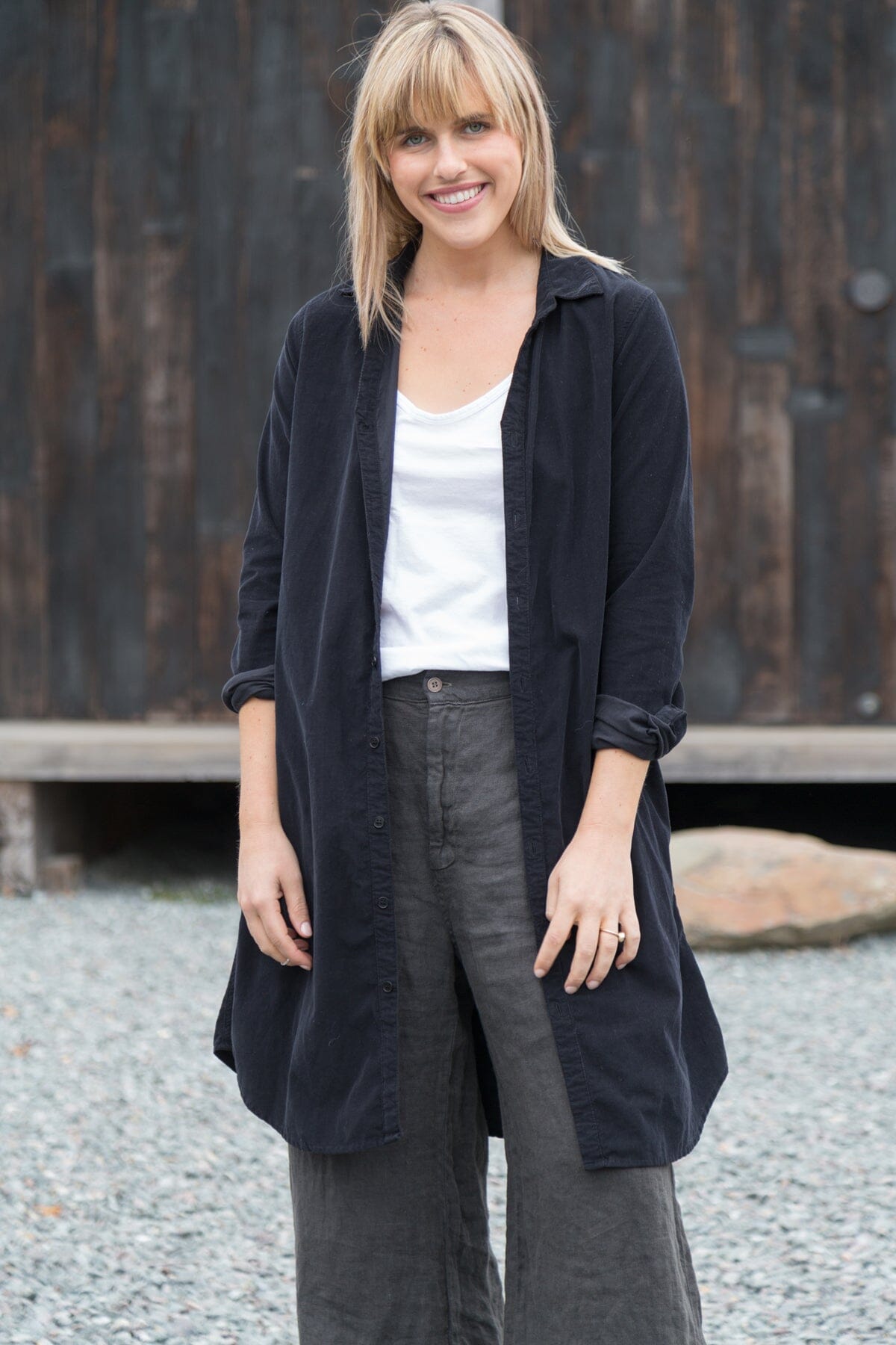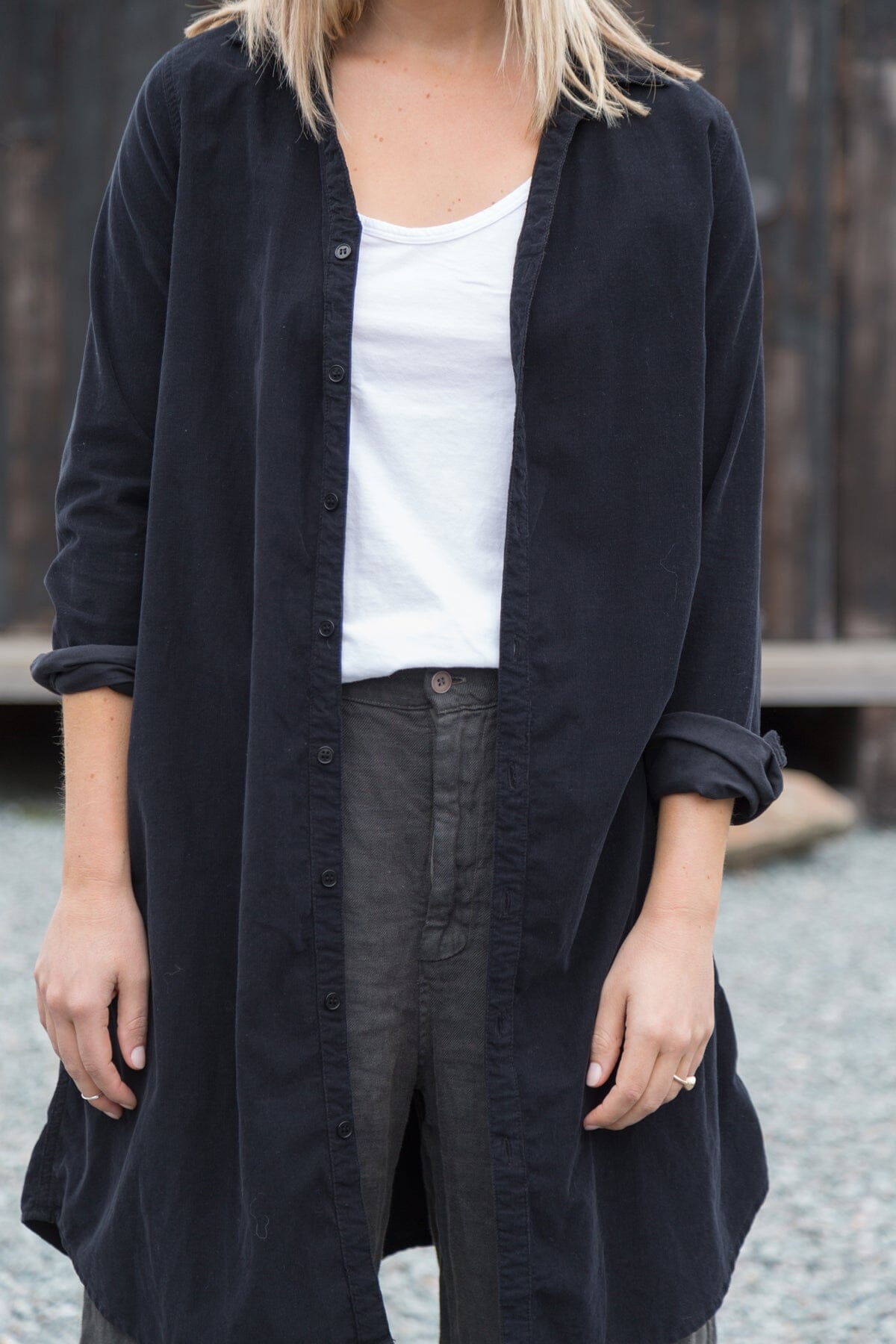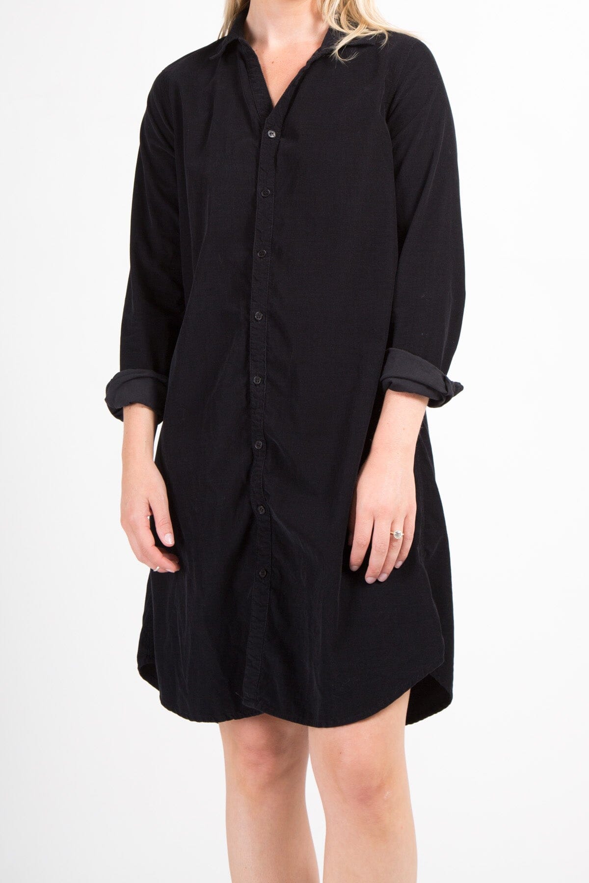 Long sleeved button down shirt dress. Hits just above the knee on most.